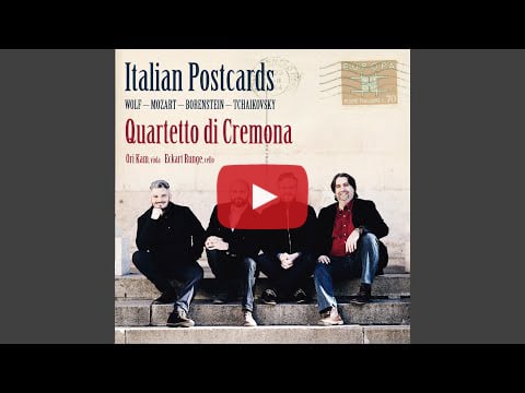 Quartetto di Cremona, the award-winning Italian quartet, celebrates its 20th year as an internationally-acclaimed performing and recording ensemble with the release of their first recording for AVIE Records: Italian Postcards. It's a collection of music inspired by the sounds, landscapes, history and romance of Italy, but written by non-Italian composers: Nimrod Borenstein’s Cieli d’Italia, a new work commissioned by the quartet; Hugo Wolf’s Italian Serenade; Mozart’s first String Quartet, “Lodi;” and Tchaikovsky’s String Sextet, “Souvenir de Florence.” Violist Ori Kam (Jerusalem Quartet) and cellist Eckart Runge (former founding member of the Artemis Quartet) join the Cremona for Tchaikovsky’s sextet.